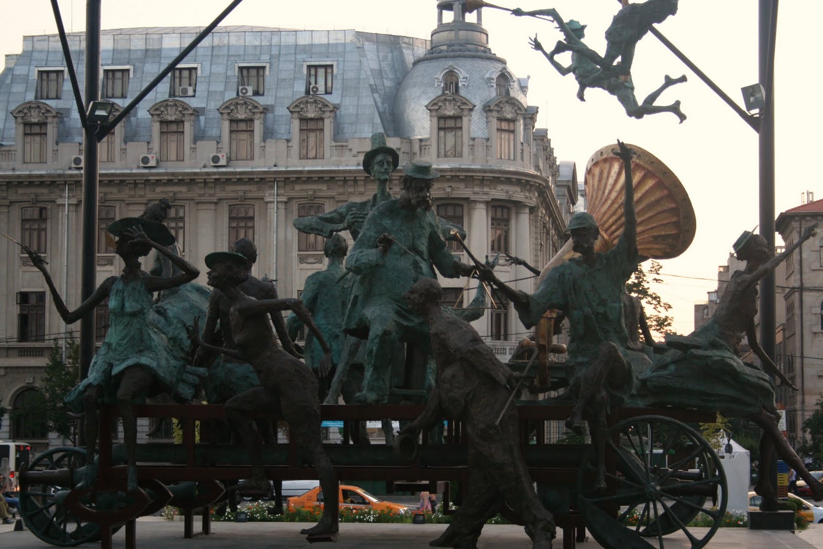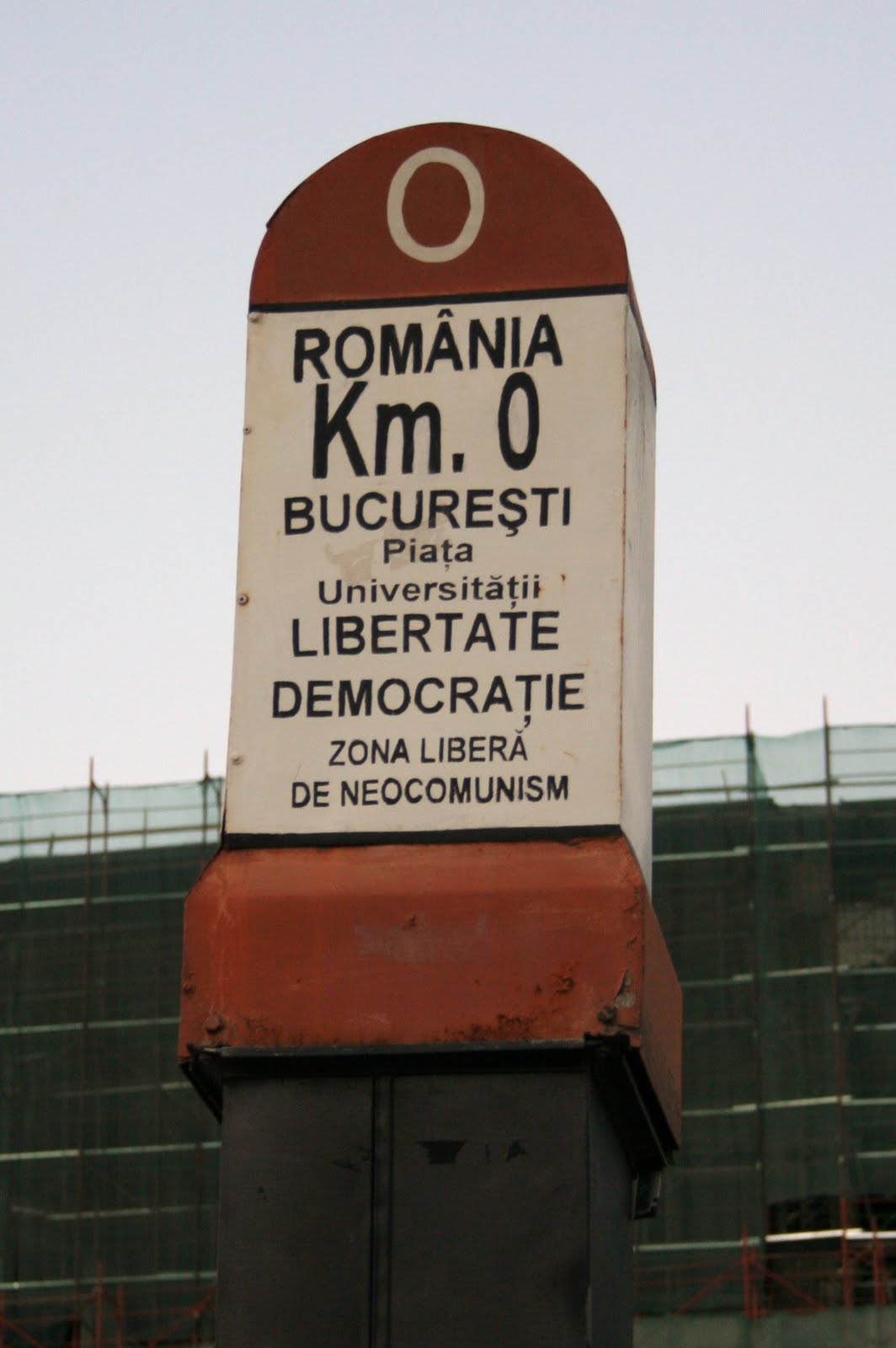 che riproduce il circo sorto per combattere la povertà dei bambini che vivono nelle fogne e che sniffano colla per non sentire i morsi della fame, che si trova proprio vicinissimo al nostro albergo (meraviglioso), in piazza Rivoluzione, così chiamata perché qui cominciò la rivoluzione del 1989 contro il regime di Ceacescu e dove infatti si trova anche il monumento al primo ribelle. Fra l’altro in questa piazza c’è una targa che indica il km 0 della Romania, lì cioè, è il centro esatto, il cuore del paese, dal quale si fa anche ripartire simbolicamente la rinascita della nazione dopo il regime.