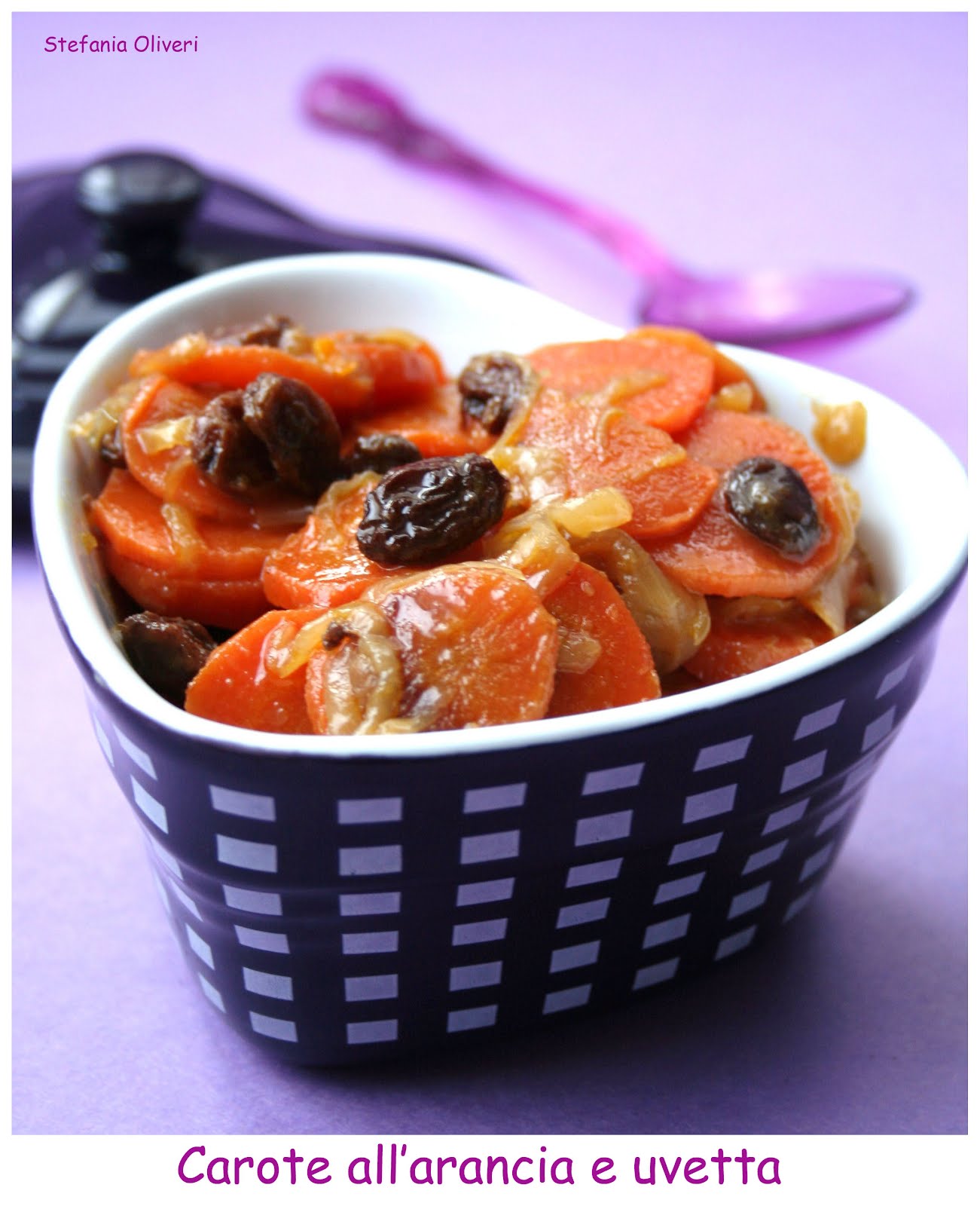Quindi aggiungete il succo di arancia e l’uva sultanina, mescolate e coprite con un coperchio e fate cuocere per circa 10 minuti (ma anche di più) a fiamma bassa. Aggiungete un po’ d’acqua se dovesse asciugarsi tutto il liquido e le carote non fossero ancora cotte.