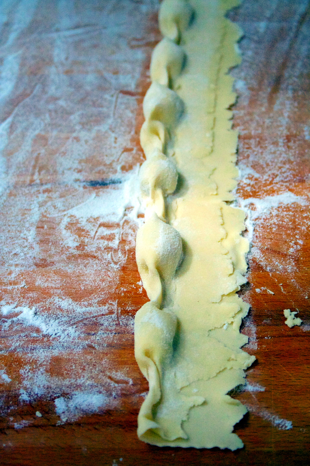 Ho messo il ripieno in una sac a poche e ho formato dei mucchietti sopra la pasta e poi ho chiuso come ha mostrato benissimo Elisa nel suo video, anche se a me sono venuti rettangolari…